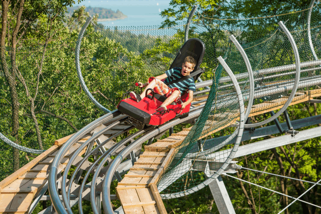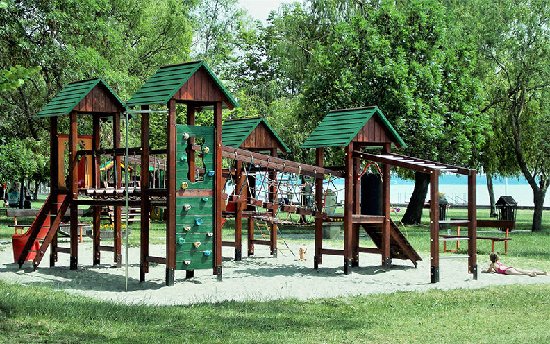 A gyerekek biztosan élvezni fogják a pallós fahidat, az egyensúlyozó játékokat, a drótkötélpályát, illetve a kötélhintát is.